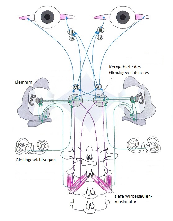 Die motorische Steuerung und Regelung der Augen (Okulomotorik) als auch die motorische Steuerung und Regelung der Wirbelsäule (vertebrale Motorik), speziell der Kopfgelenke, sind funktionell eng miteinander verschaltet. Zusammen mit dem vestibulären System sind diese maßgeblich für die Aufrechterhaltung des posturalen Systems verantwortlich.